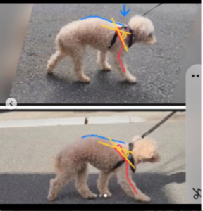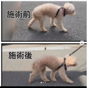ビフォーは首の付け根 アフターはあごのところまで前足が出るようになっています。
